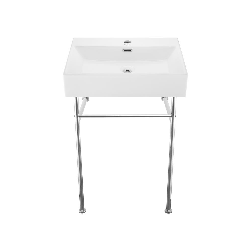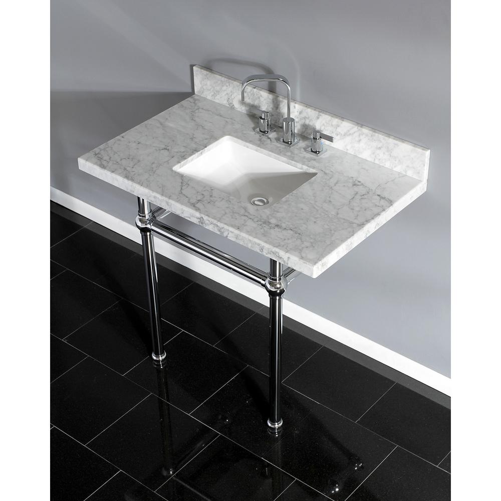 The Kingston Commercial 37" Stainless Steel Sink with Iron Bathroom Console Sink Base features a wash basin and metal base that can be accented with a handful of finish options. With a rust-resistant brushed finish, stainless steel is also resistant to scratches for a long-lasting, durable product. Carre 36" Ceramic Console Sink White Basin Black Legs Kingston Brass KVPB2018W87 Edwardian 20-Inch Porcelain Sink Console Legs, Brushed Brass $869.00 $ 869 . 00 $1,245.90 $1,245.90 A console sink is a ceramic bathroom sink that is supported by 2 or 4 metal legs. For a bathroom with an open and spacy feel,