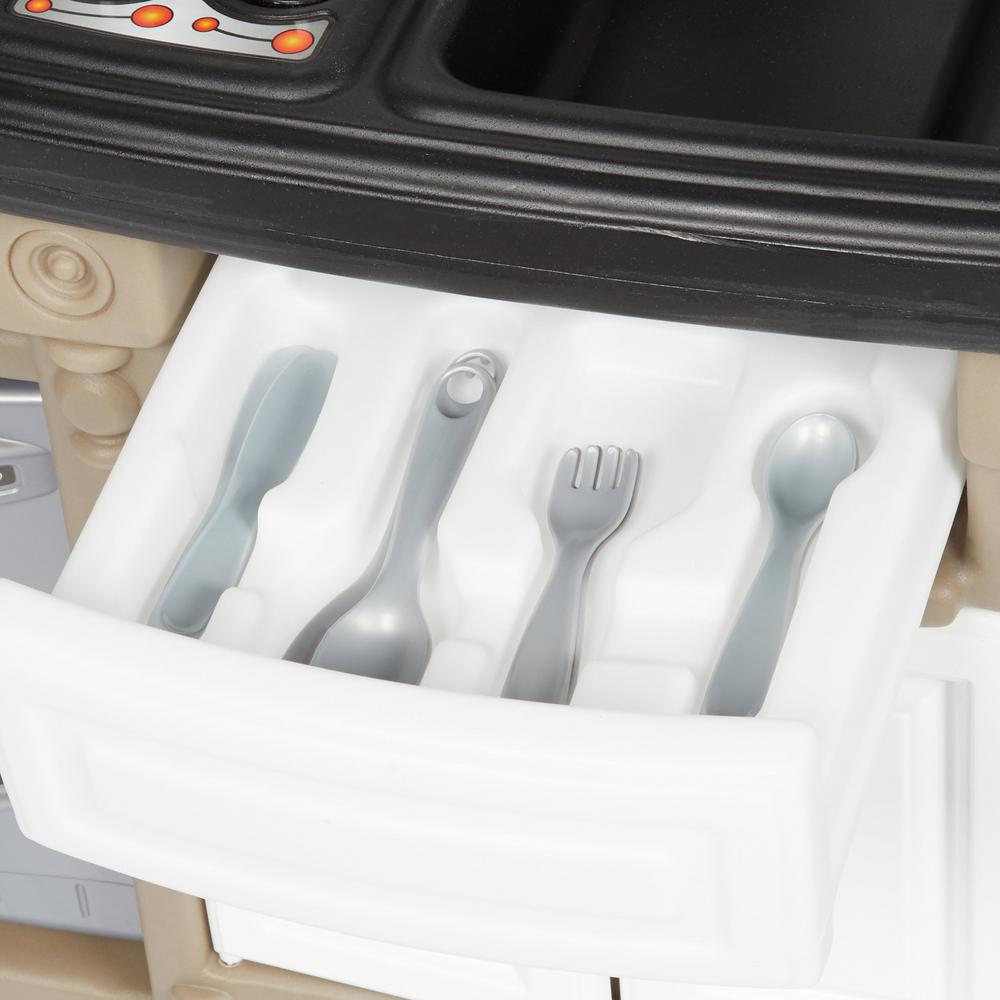 Step2 Fun Flow Play Sink Specs. Specification 1. Splish Splash this summer in our Fun Flow Play Sink. Playing in the sink has never been so fun given the different play options available. The included accessories add to this enjoyable playtime experience and enhance your child's imagination. Specification 2. Manual pump; Rotating faucet Step 2: Drill Some Drainage Holes Start by drilling drainage holes on the lid of the bin so that any water squirted out of the fountains will not pool on top but drain back into the reservoir. On this cool lid, I put about a 3/8" hole